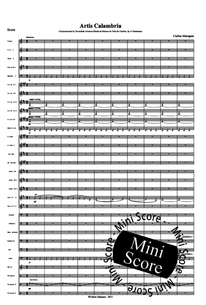 Artis Calambria foi encomendada e estreada em Agosto de 2011 pela Banda de Vale de Cambra (Portugal), dirigida por Gil Magalhães, por ocasião do seu centenário.
