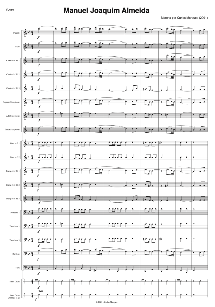 Manuel Joaquim Almeida Ano: 2001 03′ 20” Marcha de rua, encomenda do maestro Paulo Almeida, dedicada ao seu pai, Manuel Joaquim de Almeida, ex-maestro da Banda Flor da Mocidade Junqueirense.